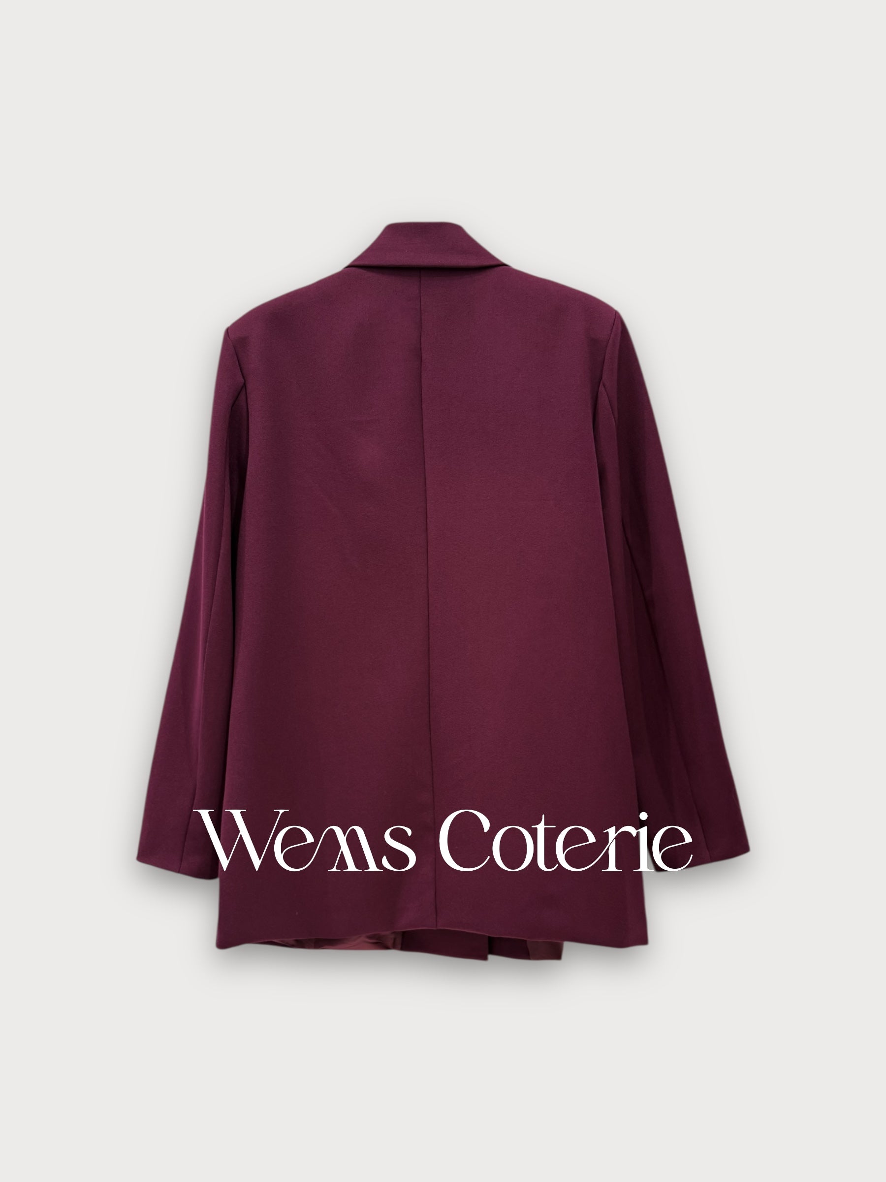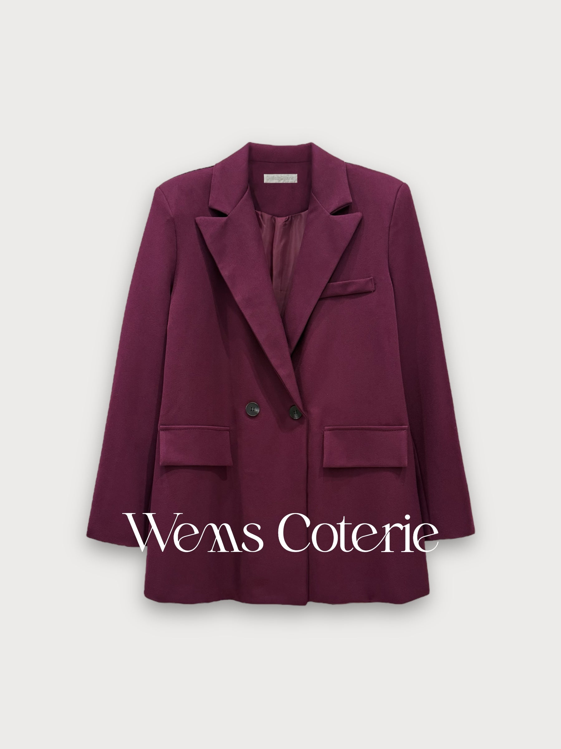 Oversized blazer with a double-breasted front closure, a classic notched lapel, relaxed fit.