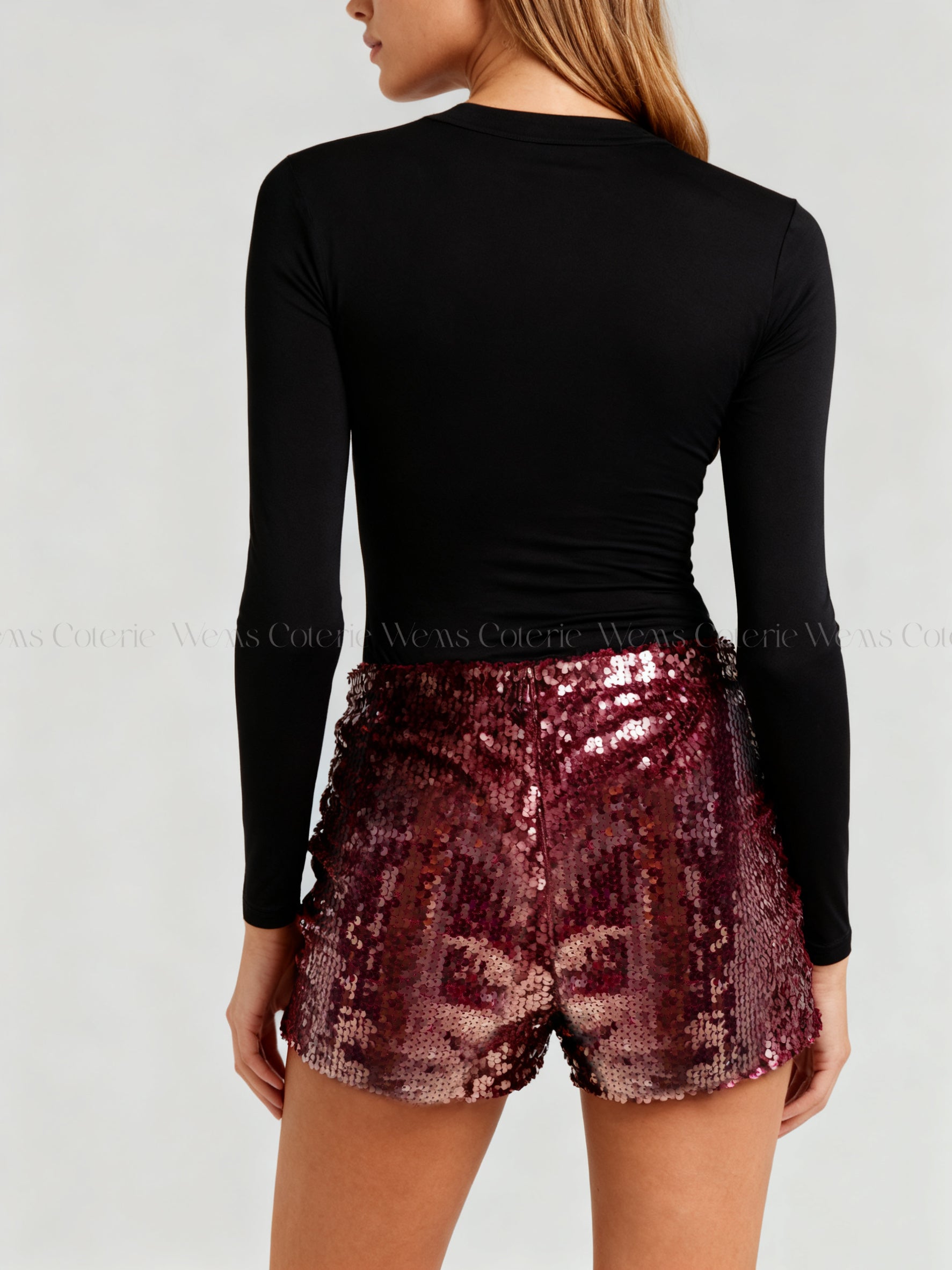 High-waisted shorts fully embellished with sequins.