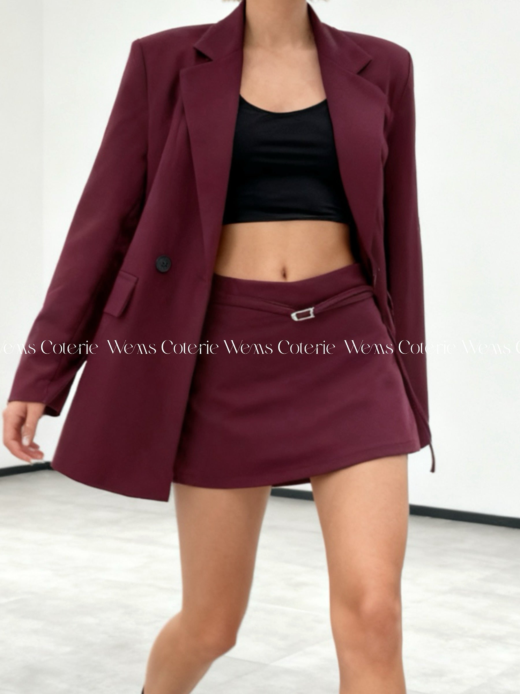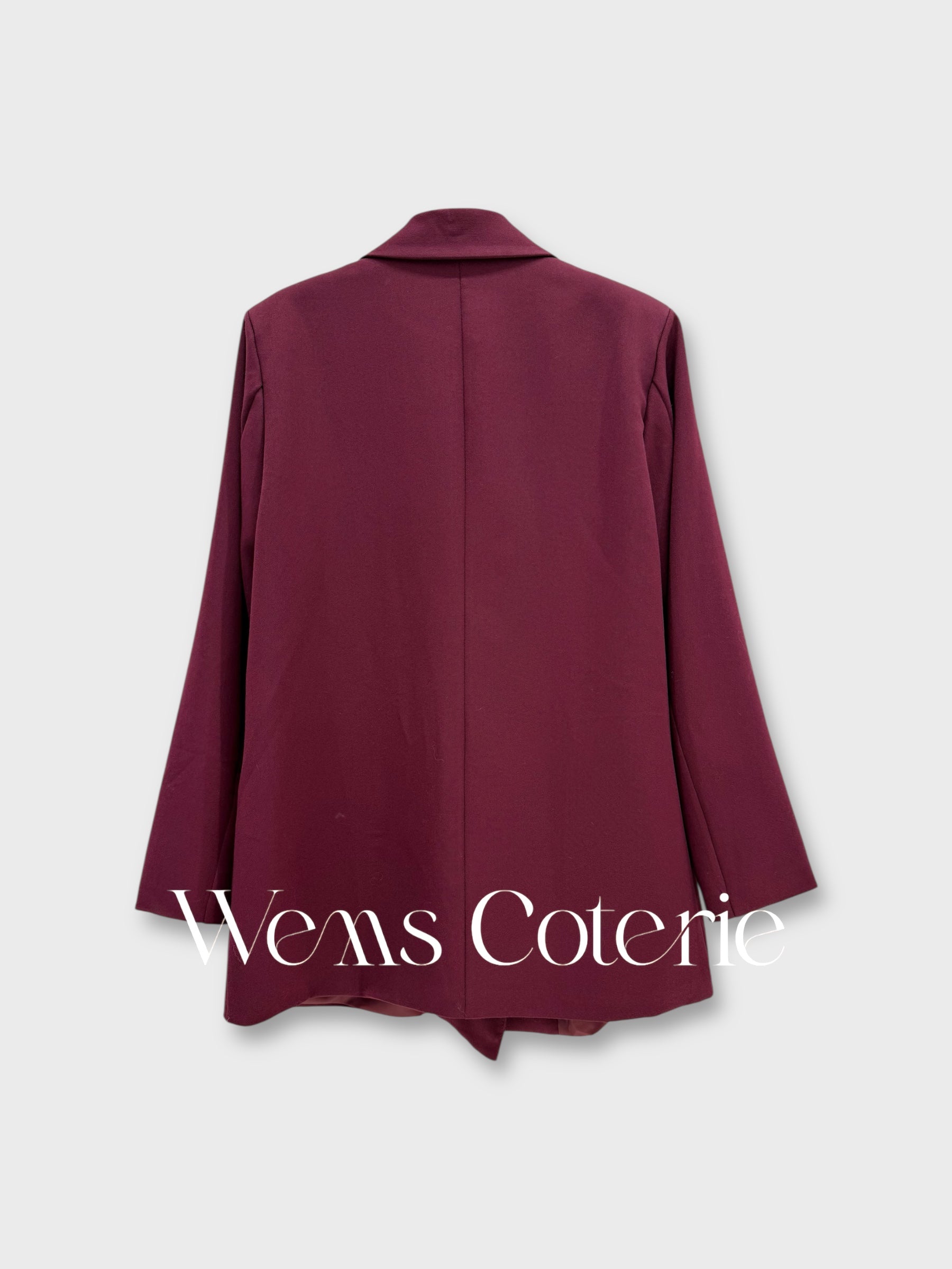 A relaxed-fit, long-line blazer. Classic wide notched lapels, a double-breasted button arrangement, and two large front flap details.