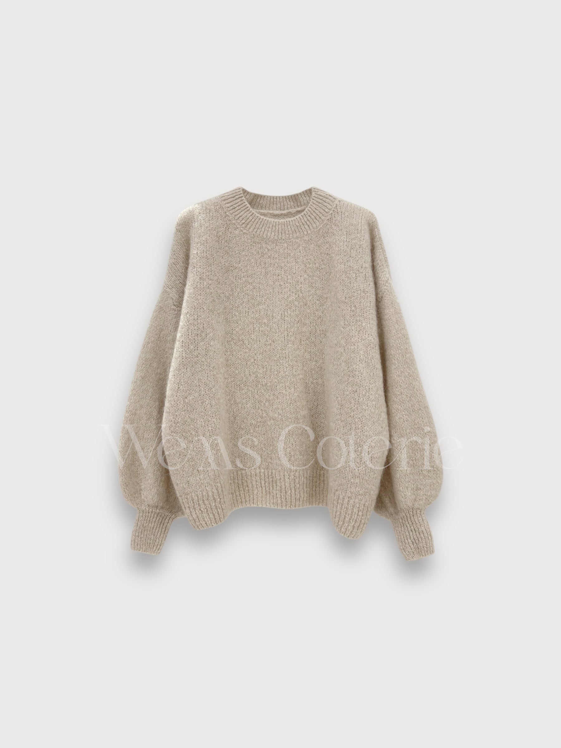 Soft cozy sweater relaxed, oversized fit, crew neckline, slight balloon sleeves with fitted cuffs.