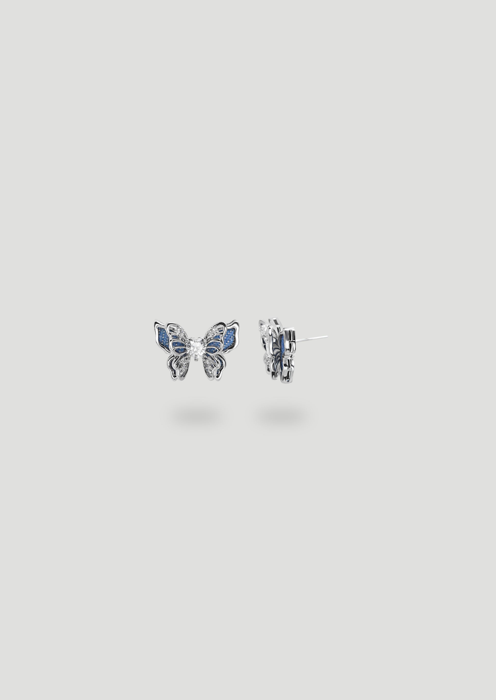 Denim Butterfly Earrings, the post is made of 925 sterling silver