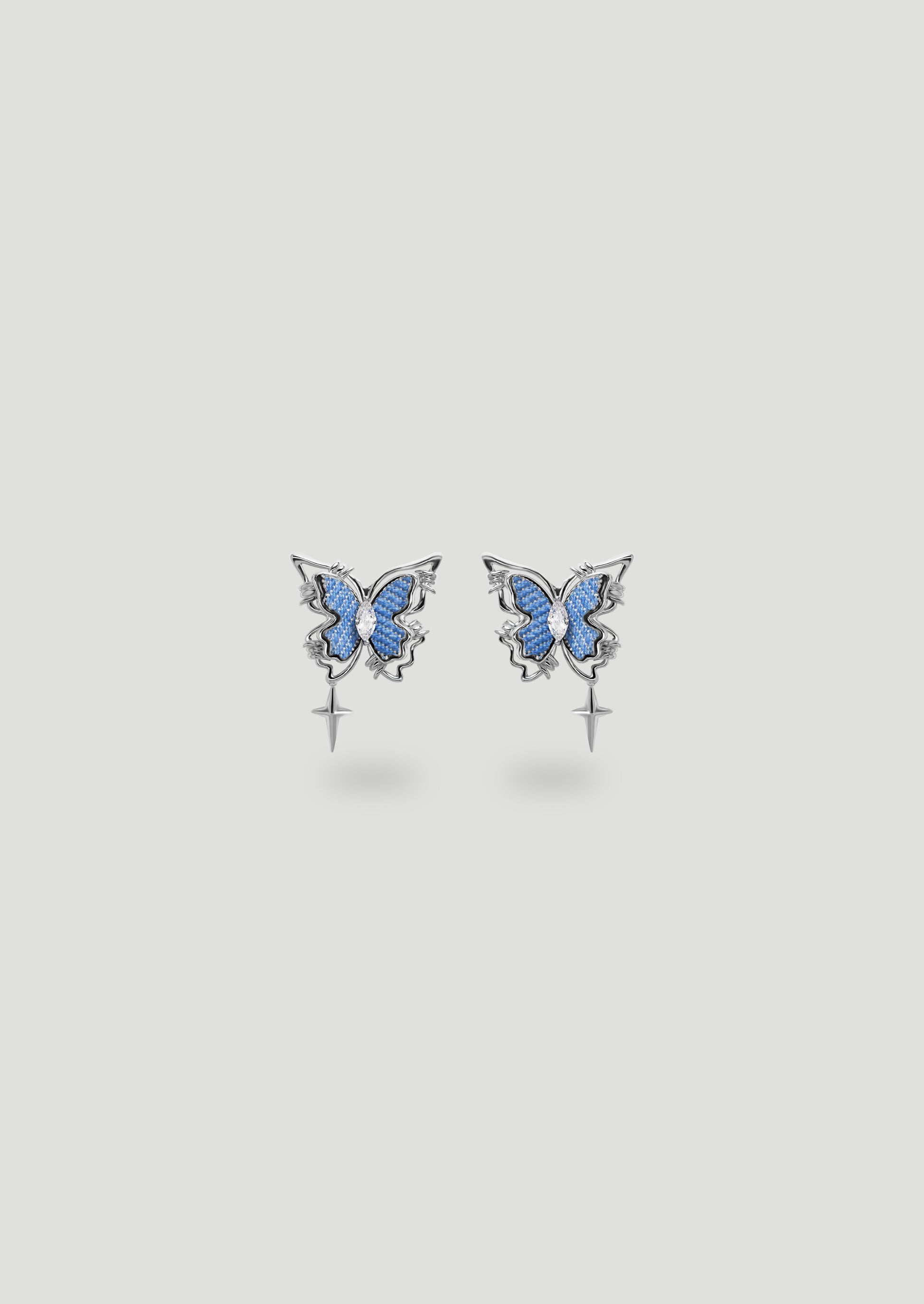 Denim Butterfly Star Earrings, the post is made of 925 sterling silver